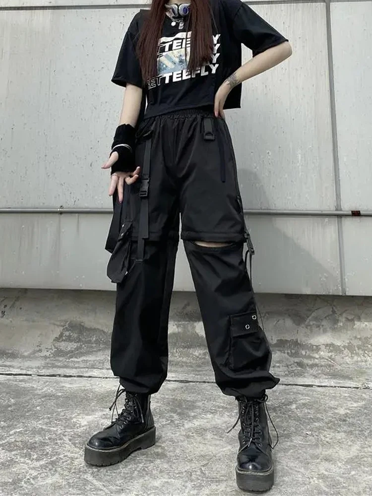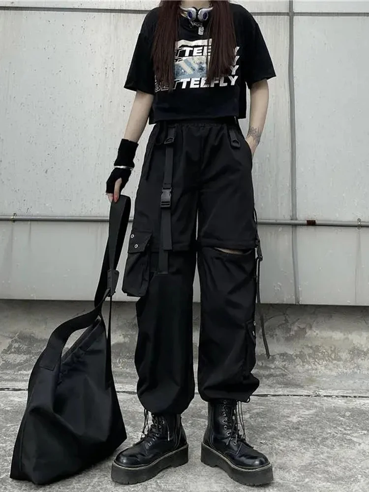 Techwear Cargo Pants Womens Hollow Out Joggers Goth Emo Oversize Pocket Female Casual Teens Hippie Punk Harem Harajuku Trousers